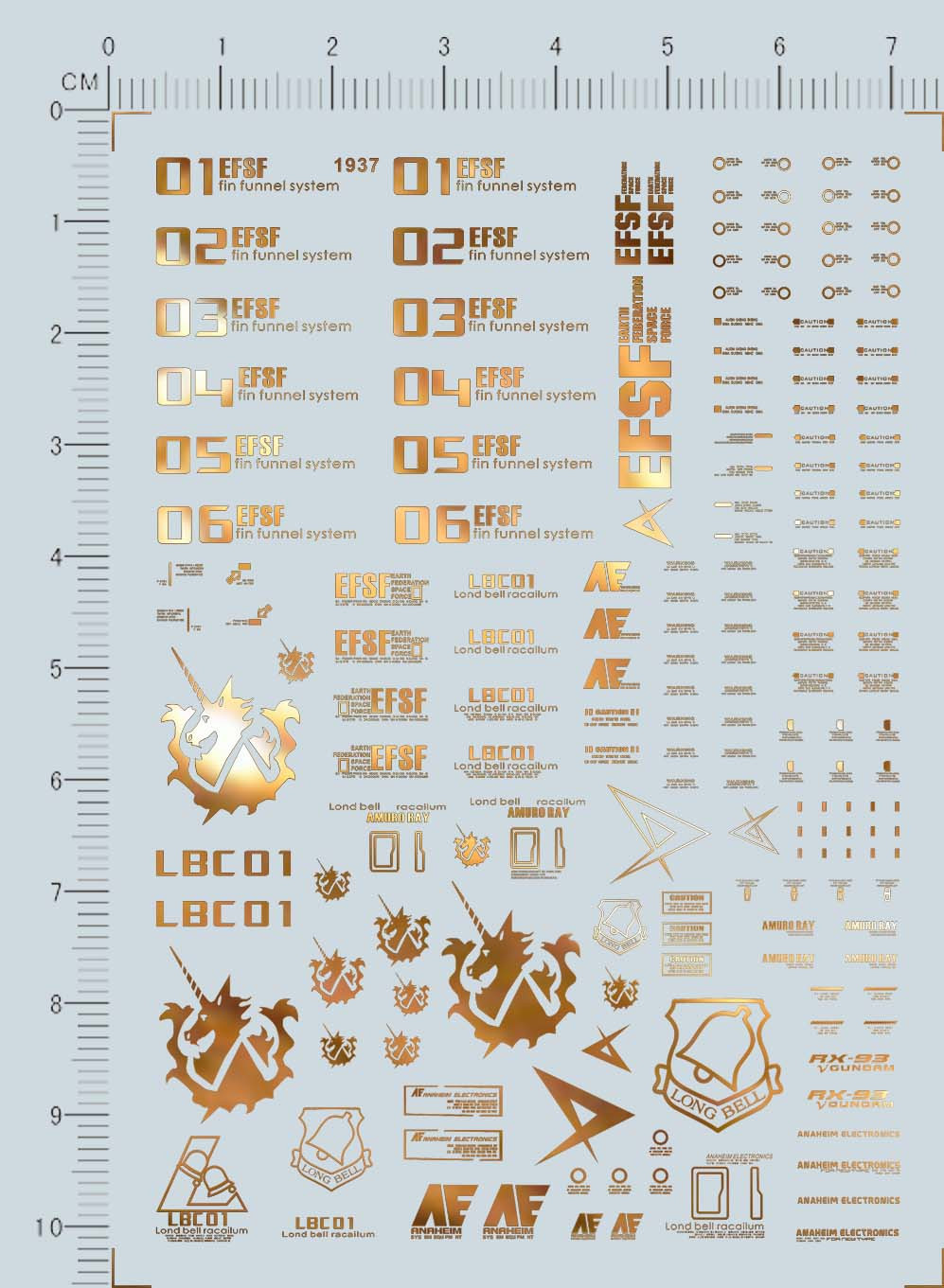 รูปลอก/สติ๊กเกอร์ Decal สีทอง สำหรับ HG RX-93-v2 Hi-v Gundam