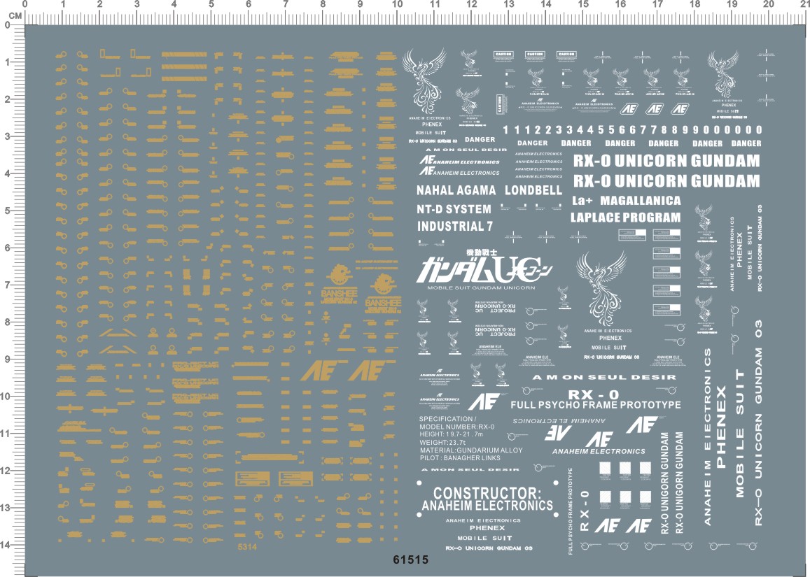 [d204] Decal MG RX 0 UNICORN GUNDAM 03 PHENEX